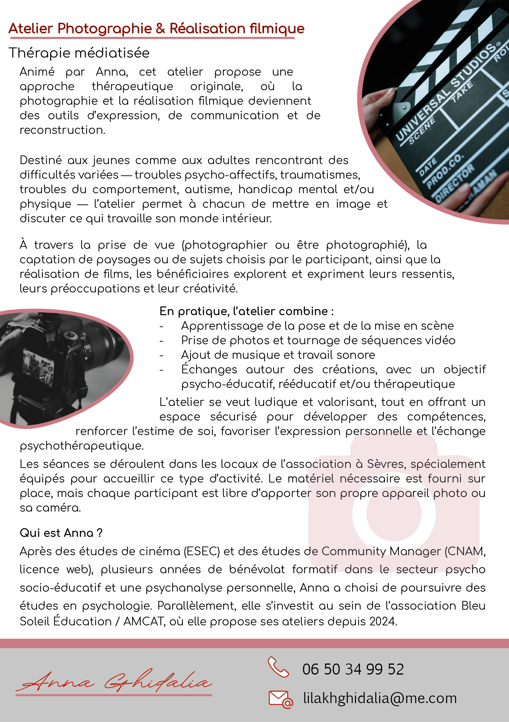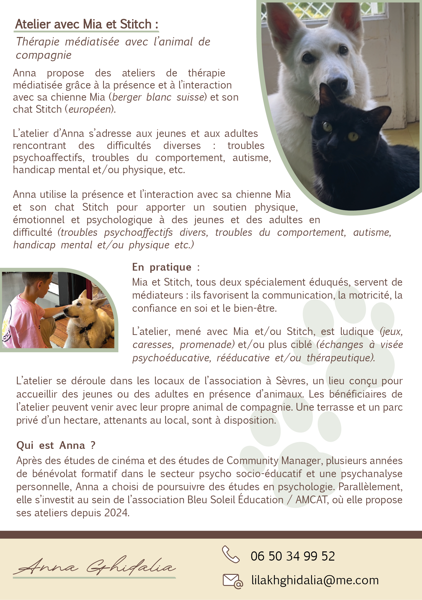 Les Ateliers Innovants Internet Livre Animaux Nos ateliers : "Rester acteur face aux écrans, sur les réseaux sociaux et internet" Le Livre de sa vie Atelier thérapie médiatisée avec l'animal de compagnie Atelier thérapie médiatisée avec Photographie & Réalisation filmique PRENDRE CONTACT